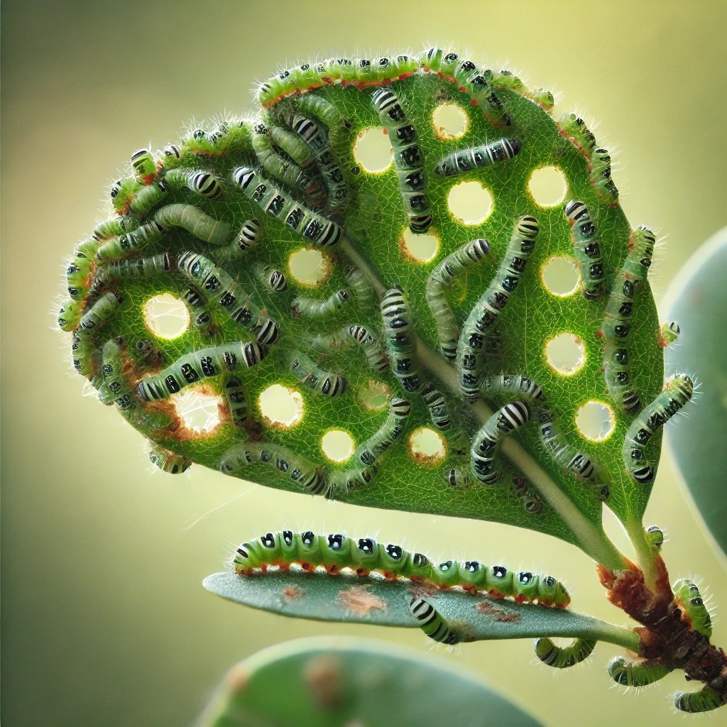 ✅ Larvenstadium: Nach wenigen Tagen schlüpfen Raupen, die sich durch das Blattwerk fressen