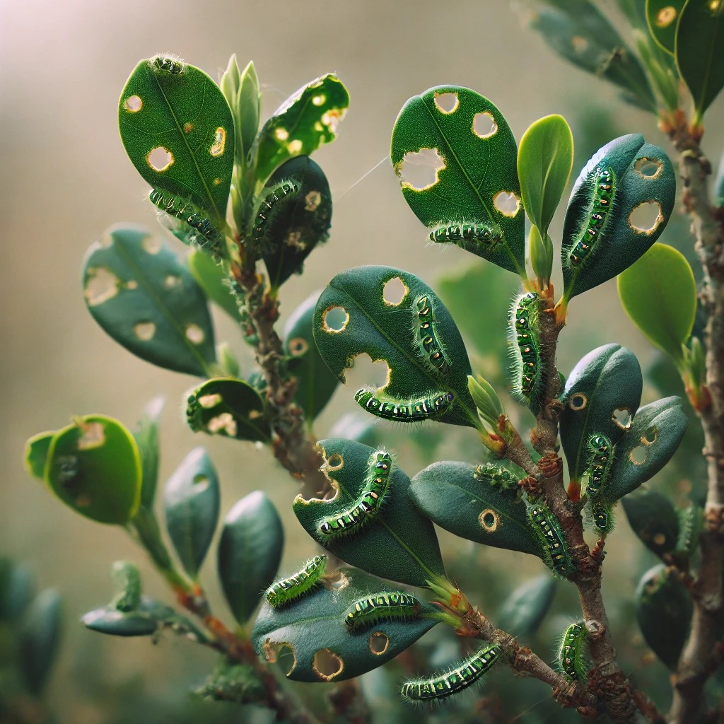 - Pilzinfektionen wie Buchsbaumtriebsterben → Führt zu braunen Flecken, nicht zu Fraßspuren