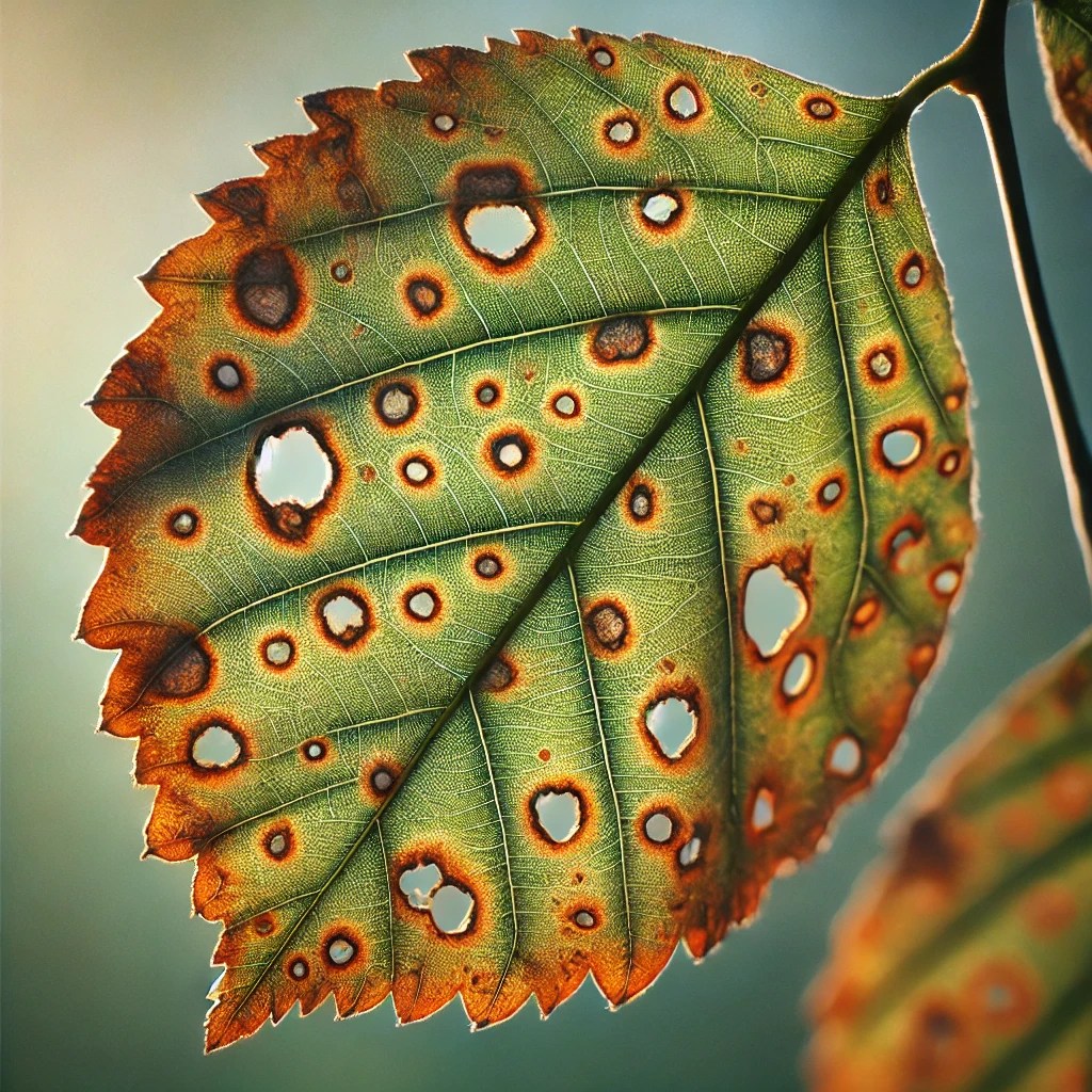 🔎 Blätter auf Flecken untersuchen – Bronzefarbene oder silbrige Punkte sind typisch für Ozon-Schäden